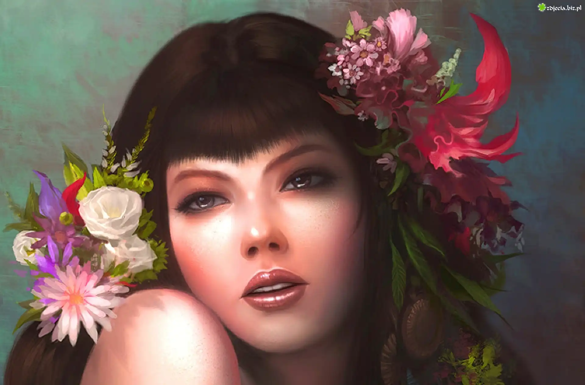 Zdjęcie Kobieta, Kwiatki, Piwne, Oczy