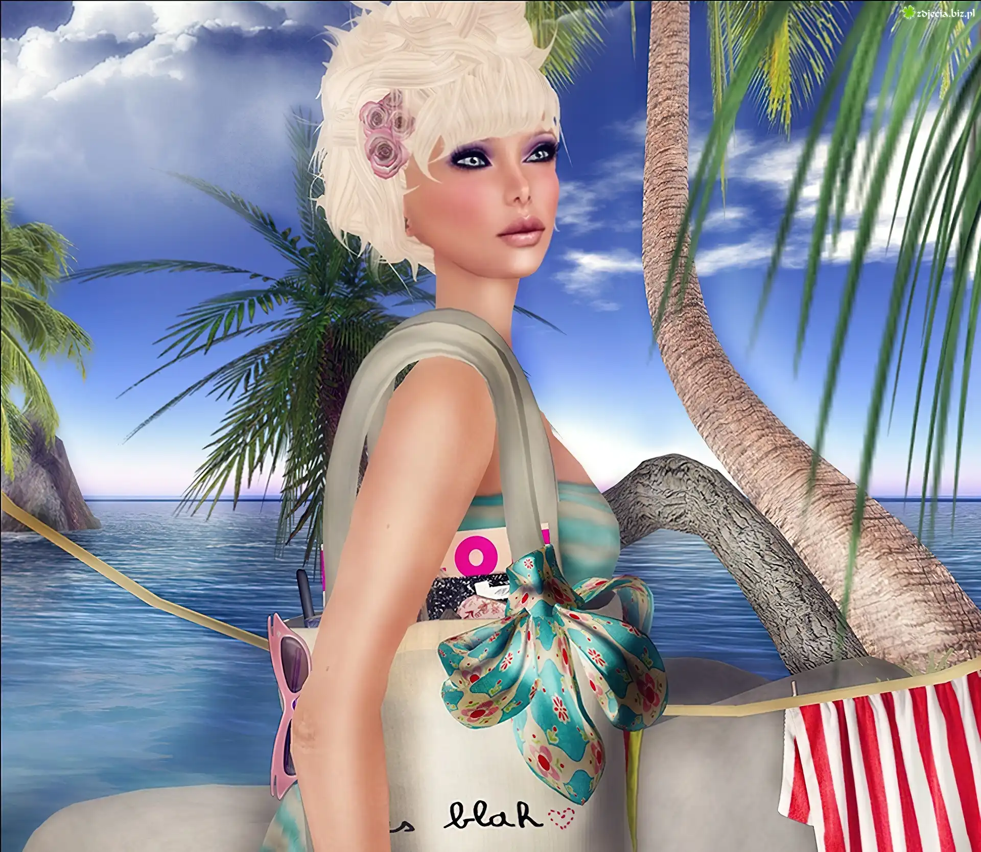 Zdjęcie Kobieta, Blondynka, Plaża, Grafika