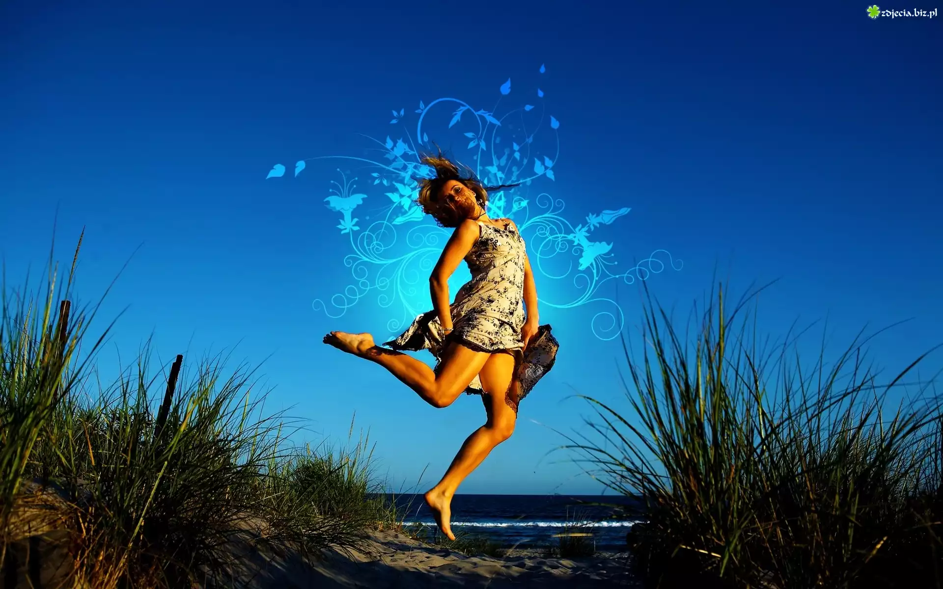 Zdjęcie Kobieta, Sukienka, Plaża, Trawy