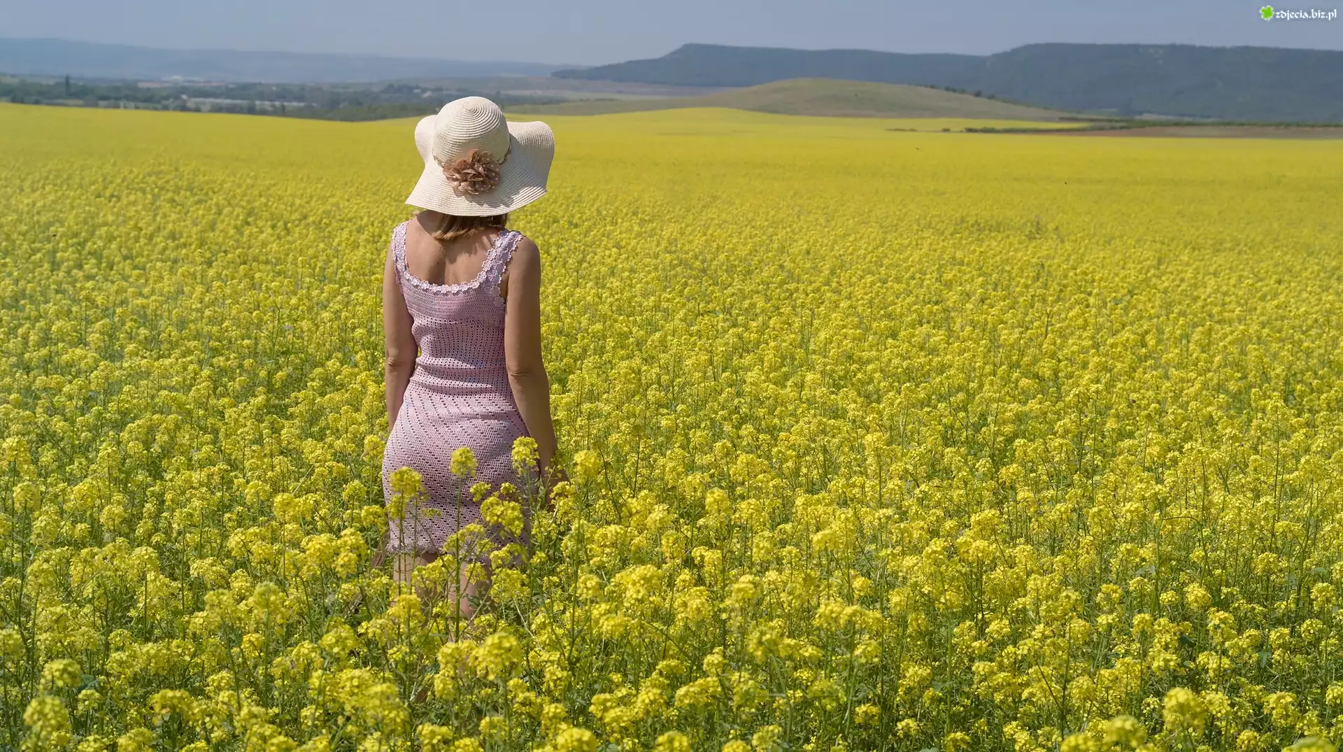 Zdjęcie Kobieta, Kapelusz, Rzepakowe, Pole, Góry