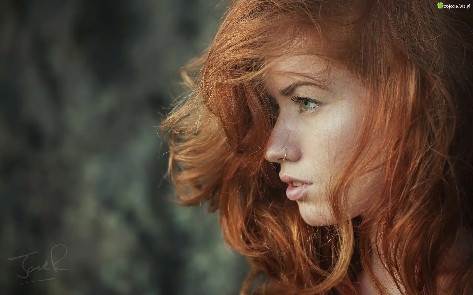 Zdjęcie Kobieta, Rude, Włosy, Profil, Kolczyk
