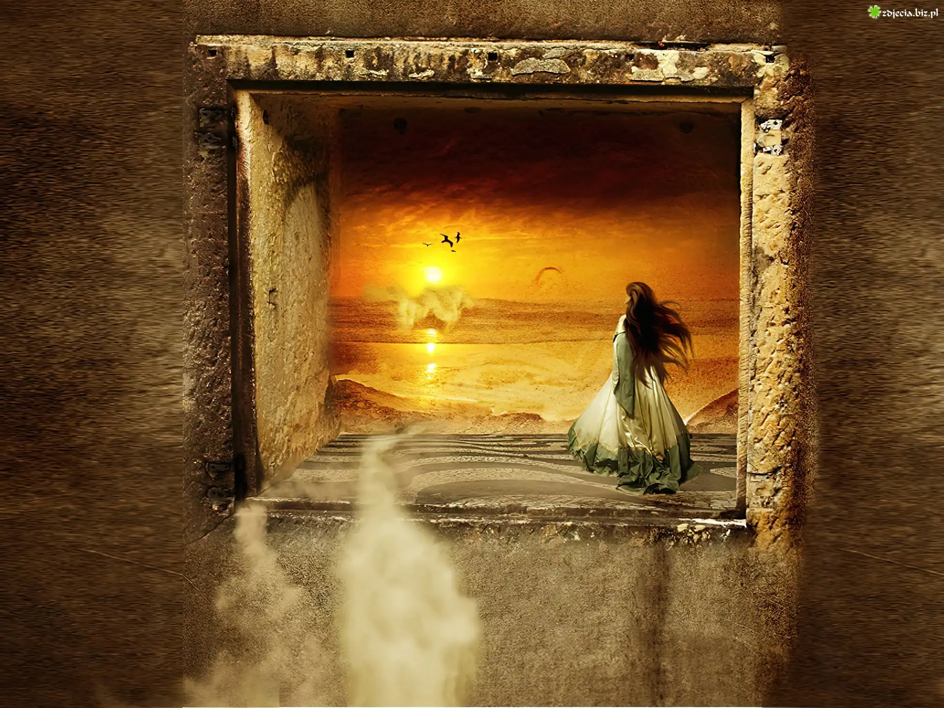 Zdjęcie Kobieta, Okno, Pustynia, Piasek