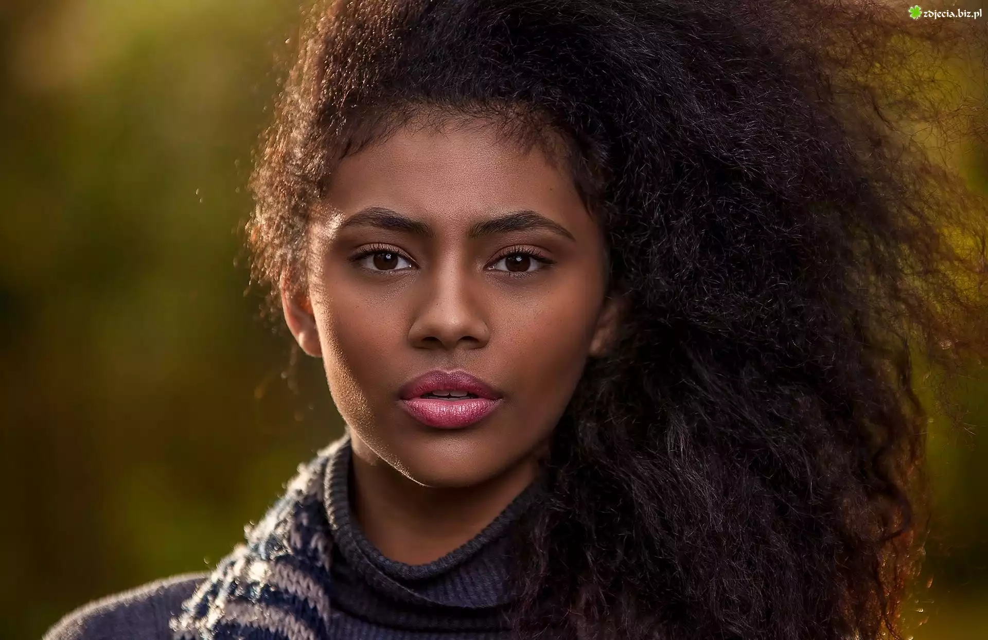 Zdjęcie, Kobieta, Mulatka, Rozwichrzone, Włosy