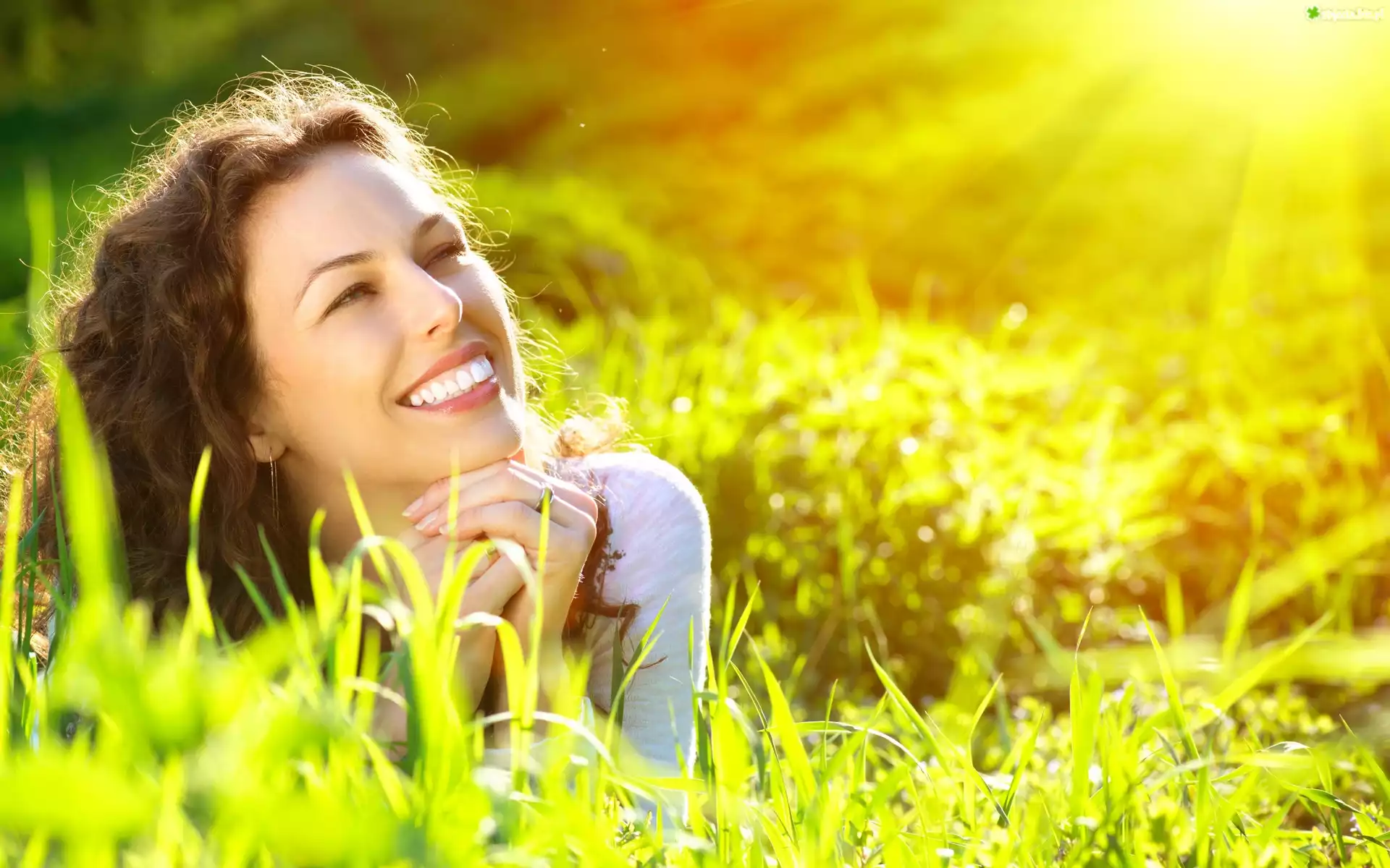 Zdjęcie Kobieta, Łąka, Promienie, Słońca, Relaks