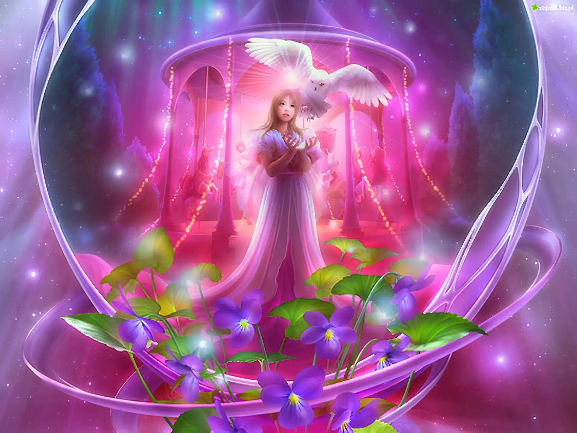 Zdjęcie Kobieta, Biała, Sowa, Kwiaty