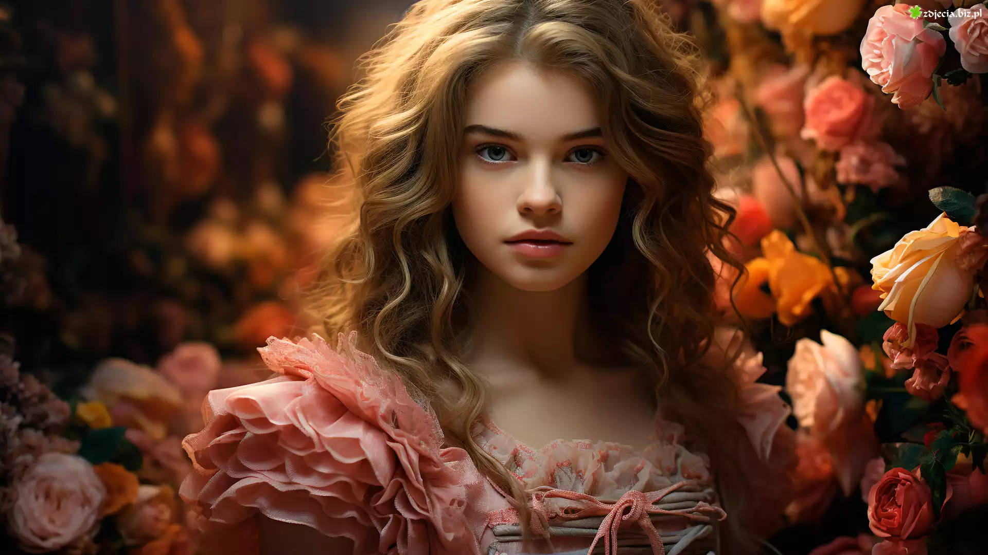 Zdjęcie Kobieta, Kwiaty, Spojrzenie