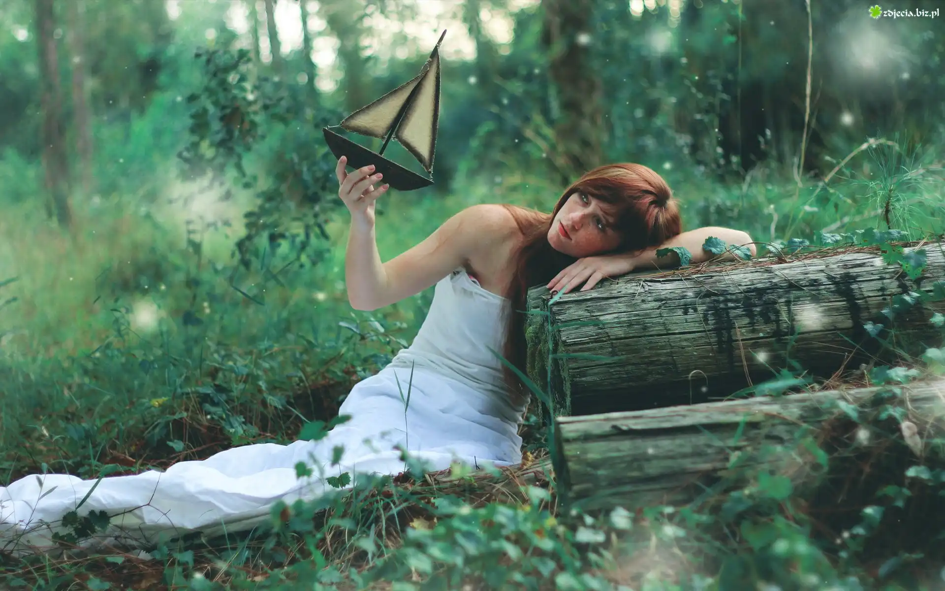 Zdjęcie Kobieta, Trawy, Spojrzenie, Żaglówka
