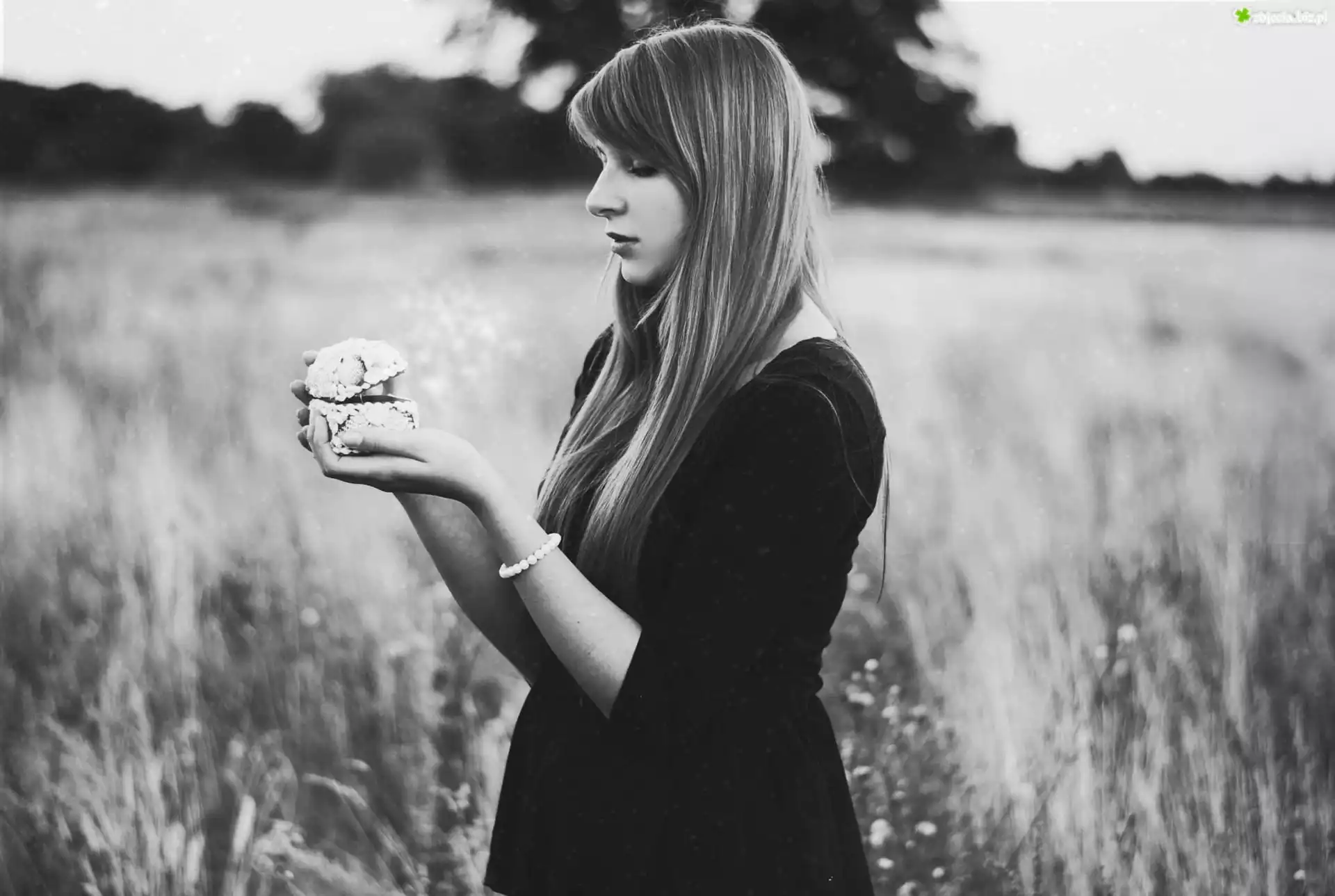 Zdjęcie, Kobieta, Czarna, Sukienka, Szkatułka