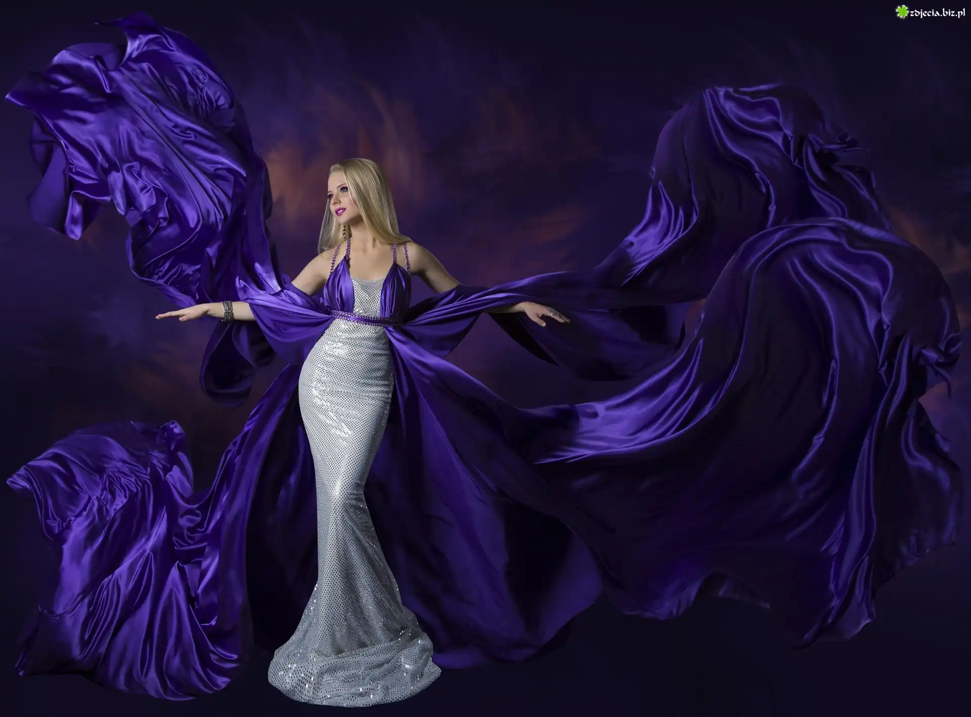 Zdjęcie Kobieta, Blondynka, Makijaż, Sukienka, Wiatr