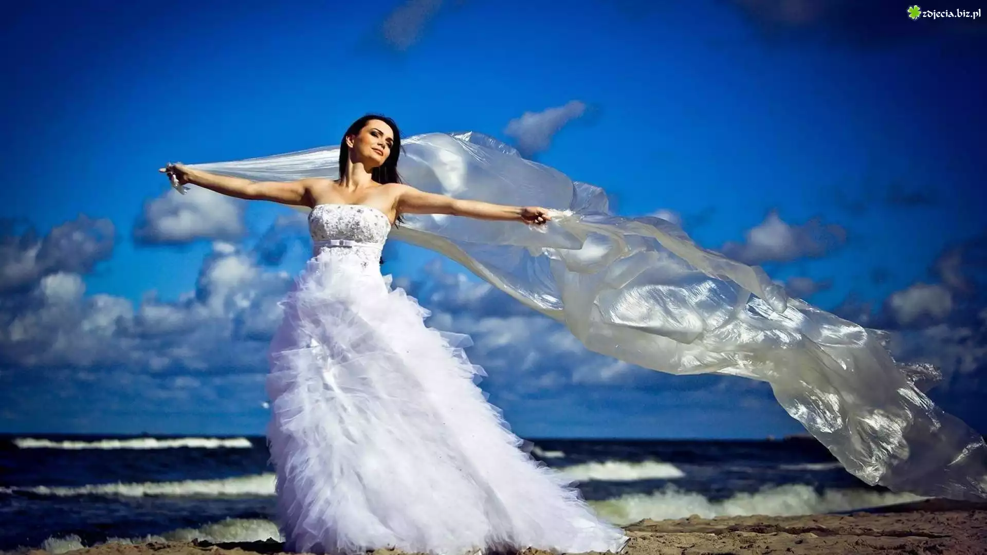 Zdjęcie Kobieta, Biała, Suknia, Morze
