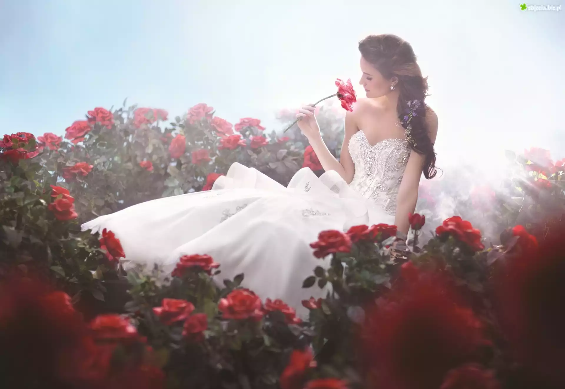 Zdjęcie Kobieta, Biała, Suknia, Róże