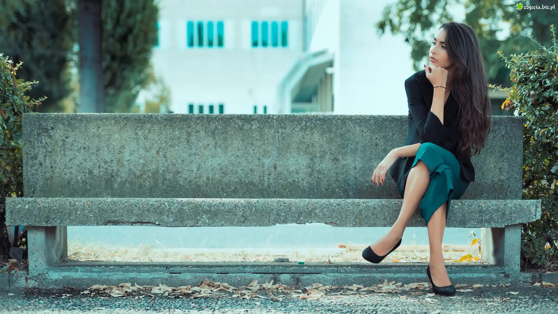 Zdjęcie Kobieta, Długowłosa, Szatynka, Ławka