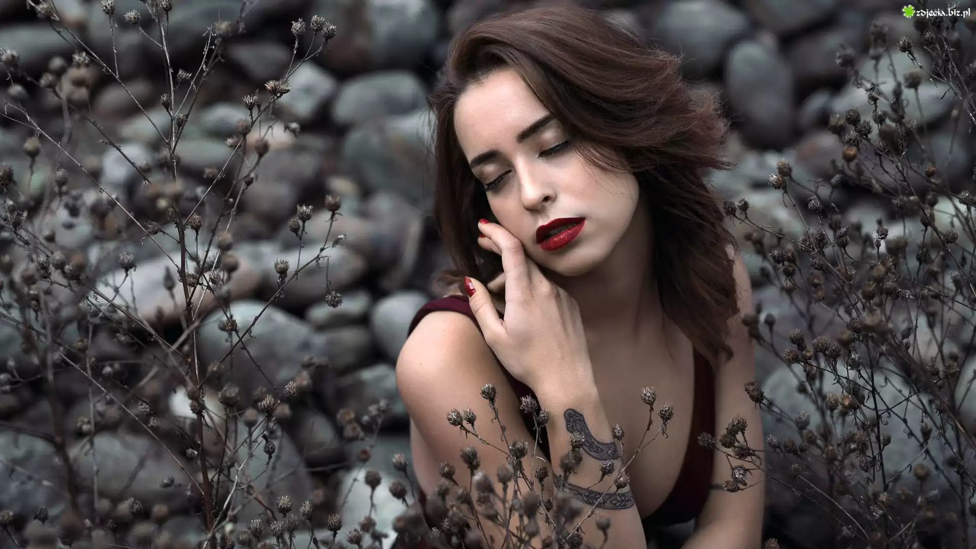 Zdjęcie Kobieta, Szatynka, Tatuaż, Rośliny