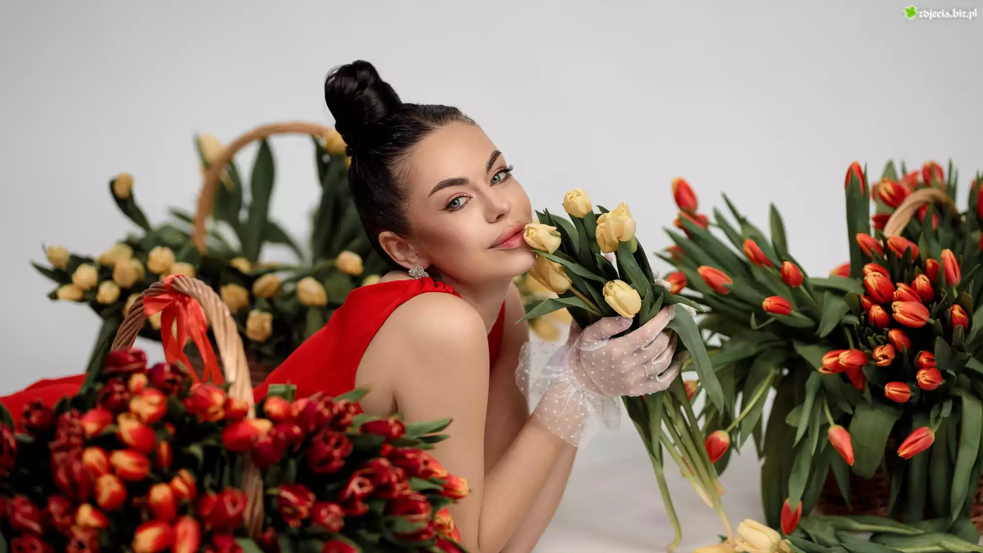 Zdjęcie Kobieta, Kwiaty, Tulipany