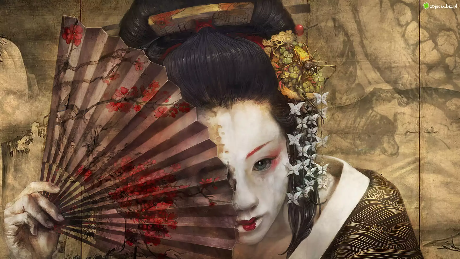 Zdjęcie Kobieta, Gejsza, Wachlarz, Grafika