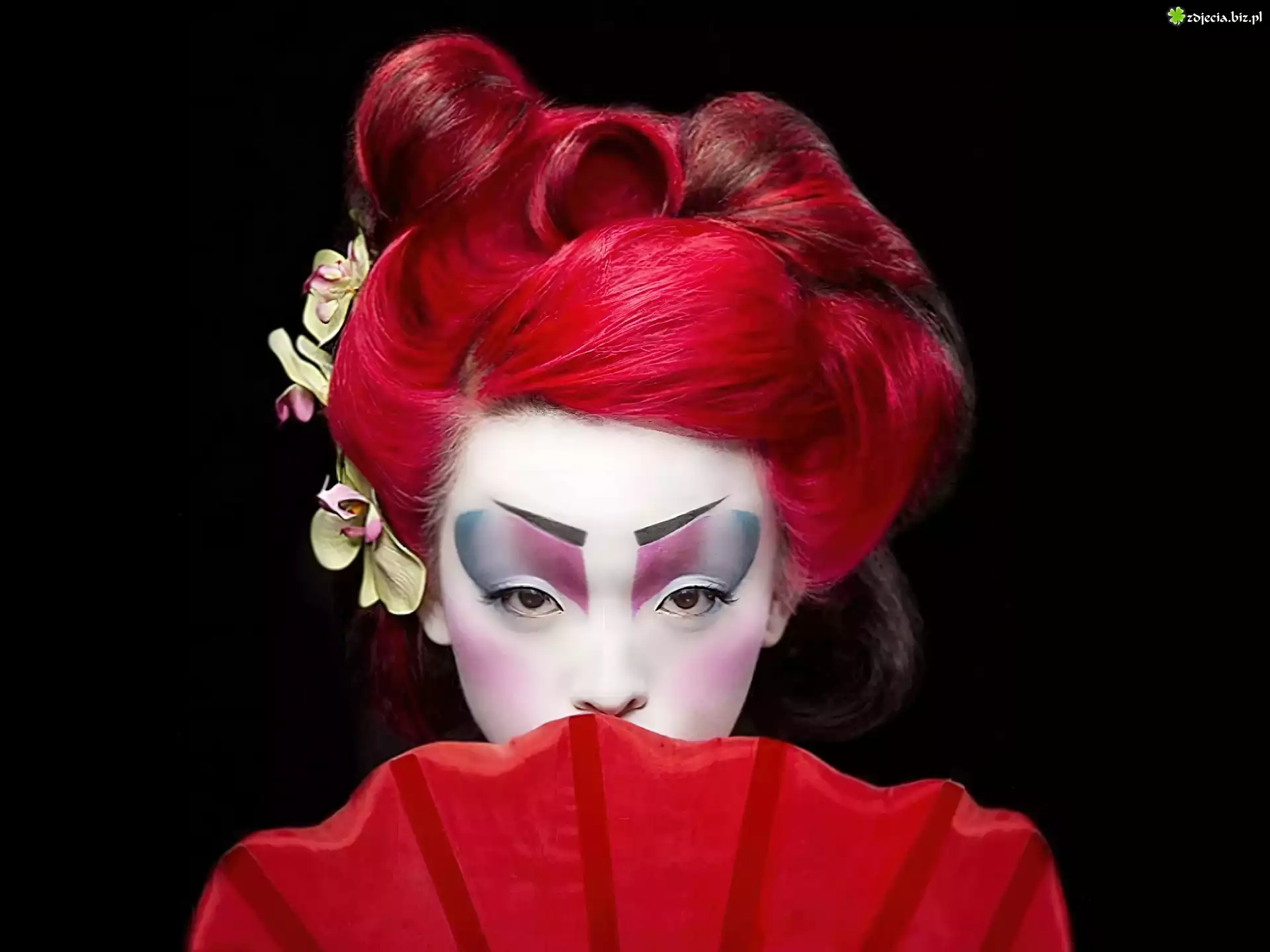 Zdjęcie Kobieta, Makijaż, Wachlarz, Kwiatek