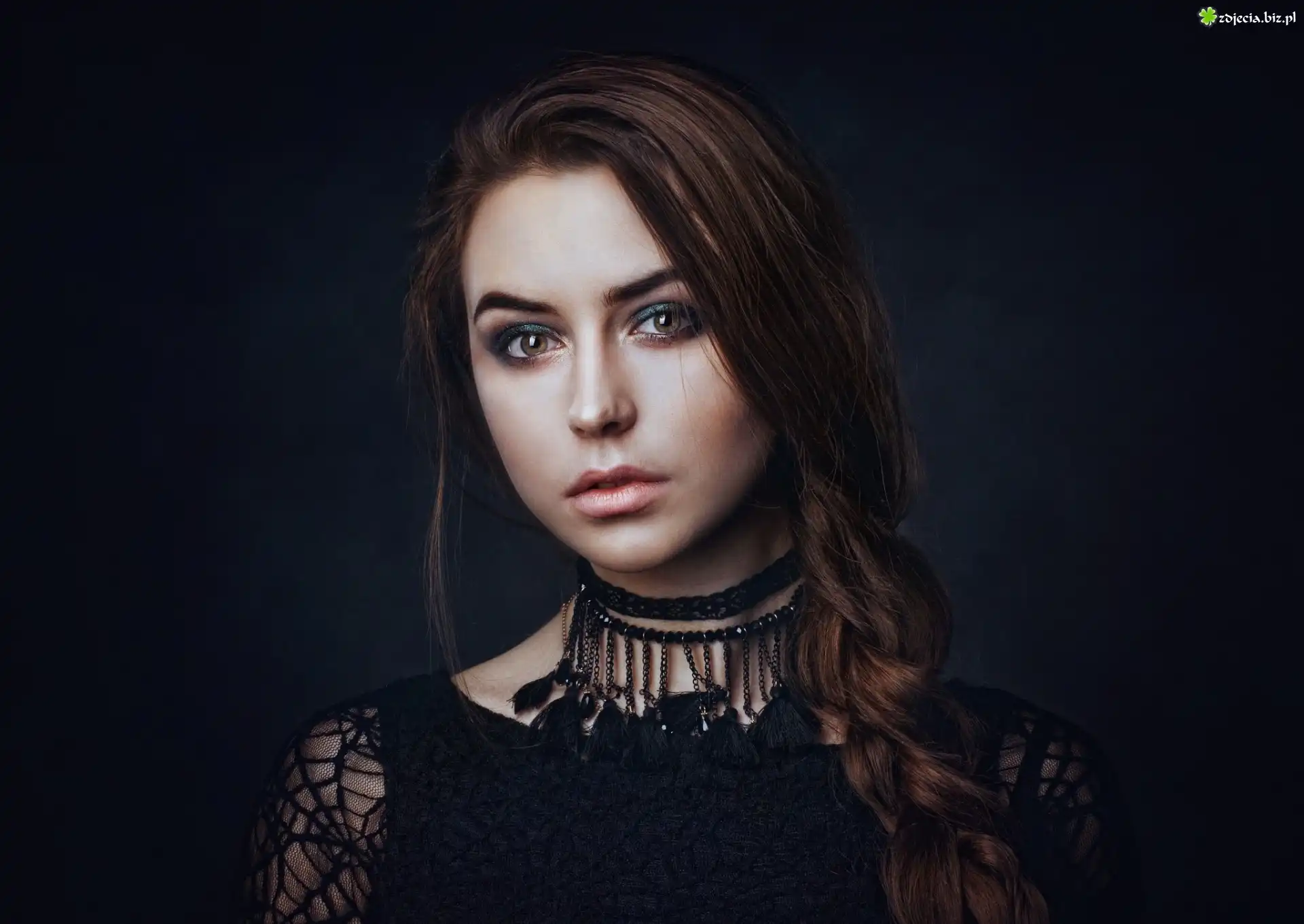 Zdjęcie, Kobieta, Brunetka, Warkocz, Makijaż