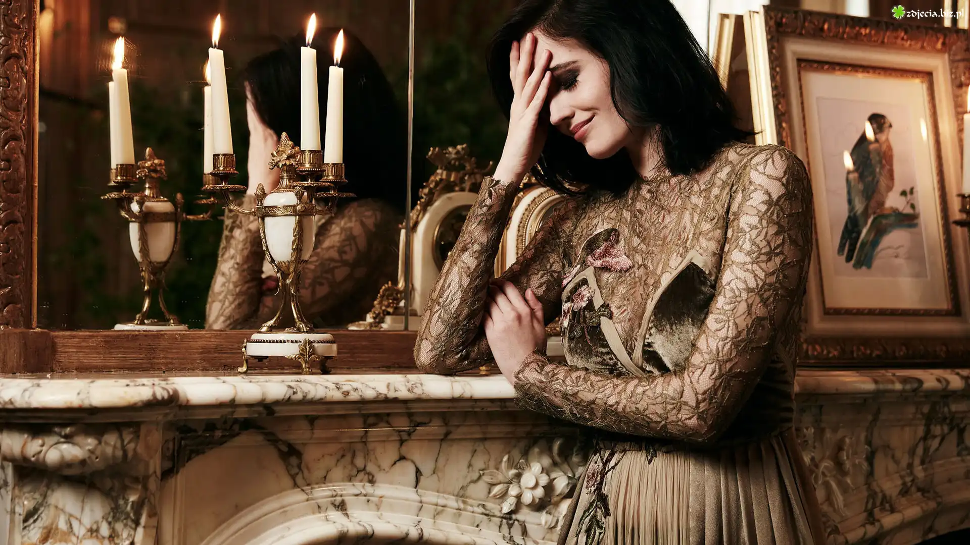 Zdjęcie Kobieta, Aktorka, Eva Green, Świece, Kominek