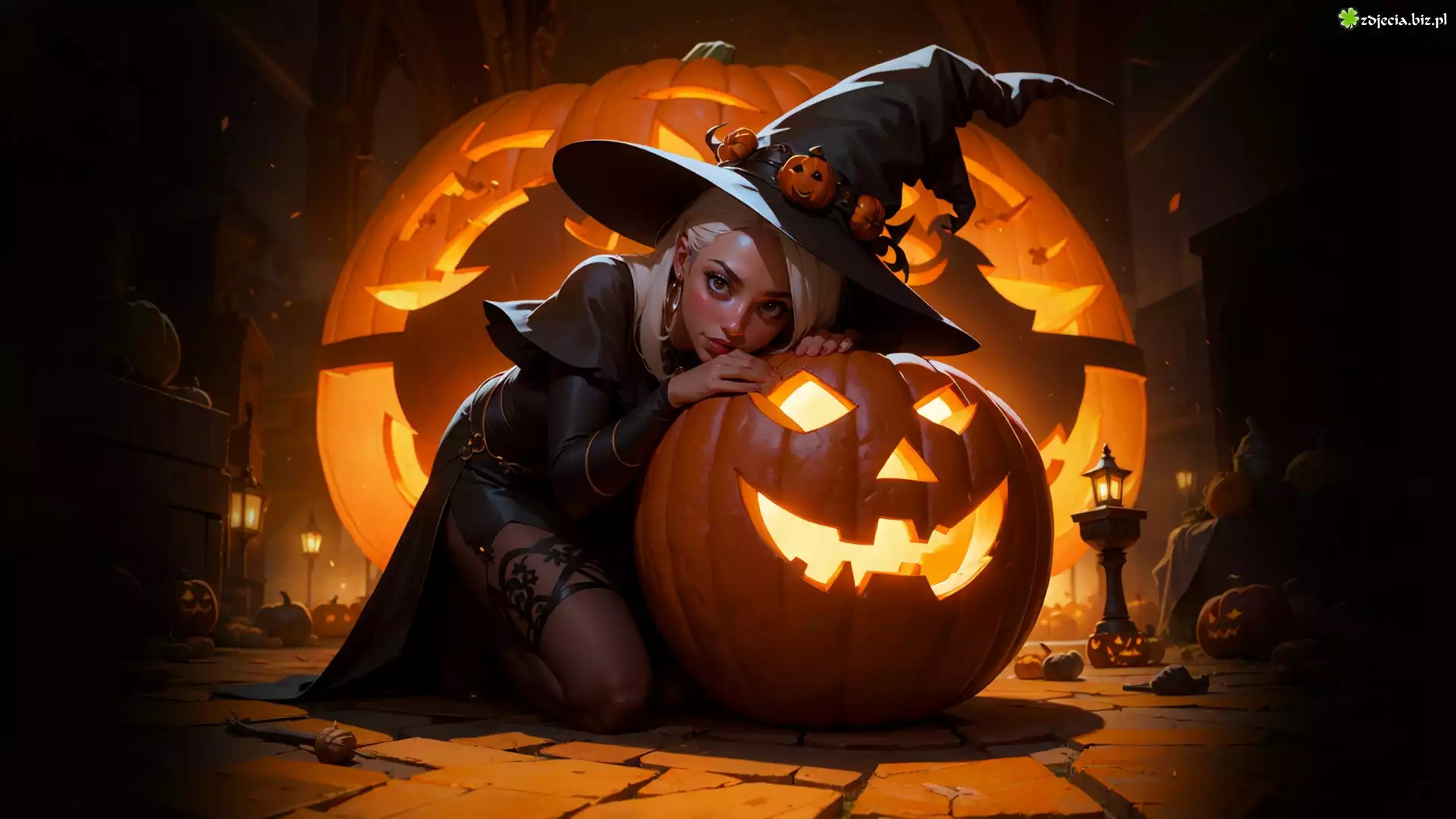 Zdjęcie Halloween, Kobieta, Wiedźma, Dynia, Lampy