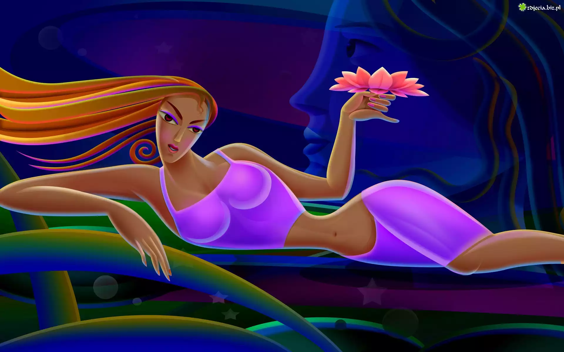 Zdjęcie Kobieta, Leżąca, Rozwiane, Włosy, Grafika