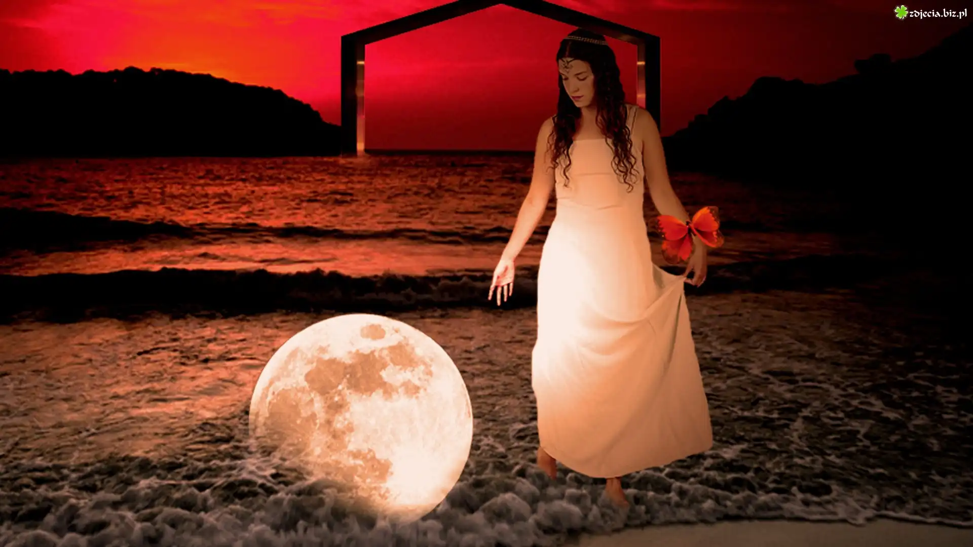 Zdjęcie Kobieta, Motyl, Woda, Planeta