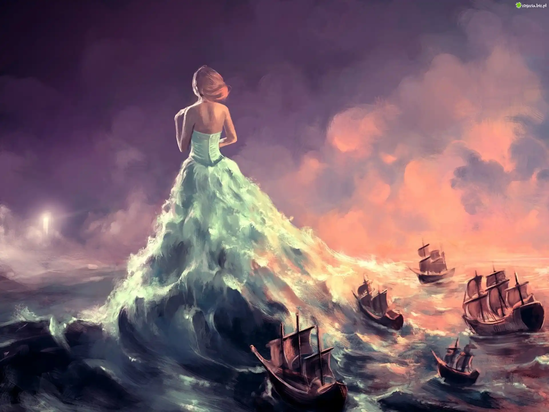 Zdjęcie Kobieta, Suknia, Woda, Łódki