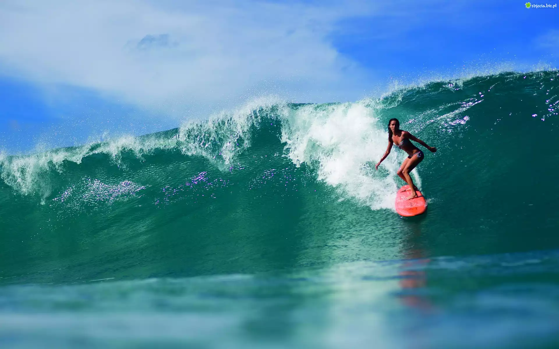 Zdjęcie Kobieta, Surfing, Wysoka, Fala