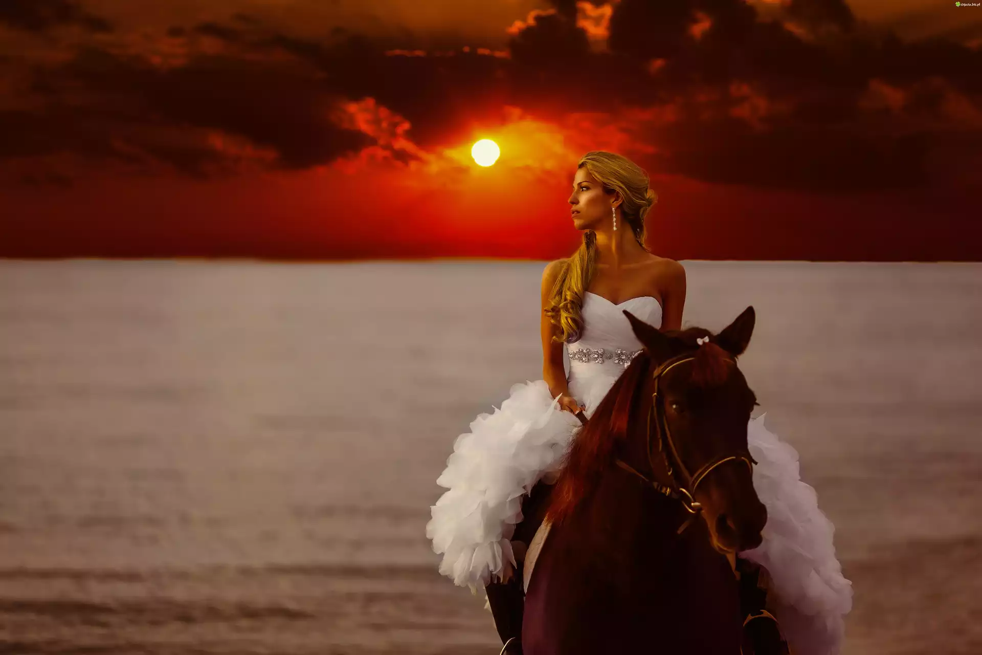 Zdjęcie, Kobieta, Koń, Zachód słońca