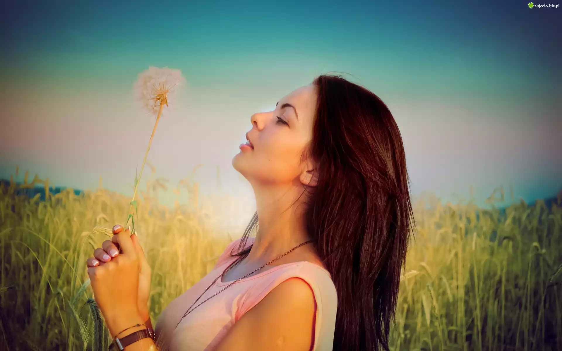 Zdjęcie Kobieta, Pole, Zboże, Dmuchawiec