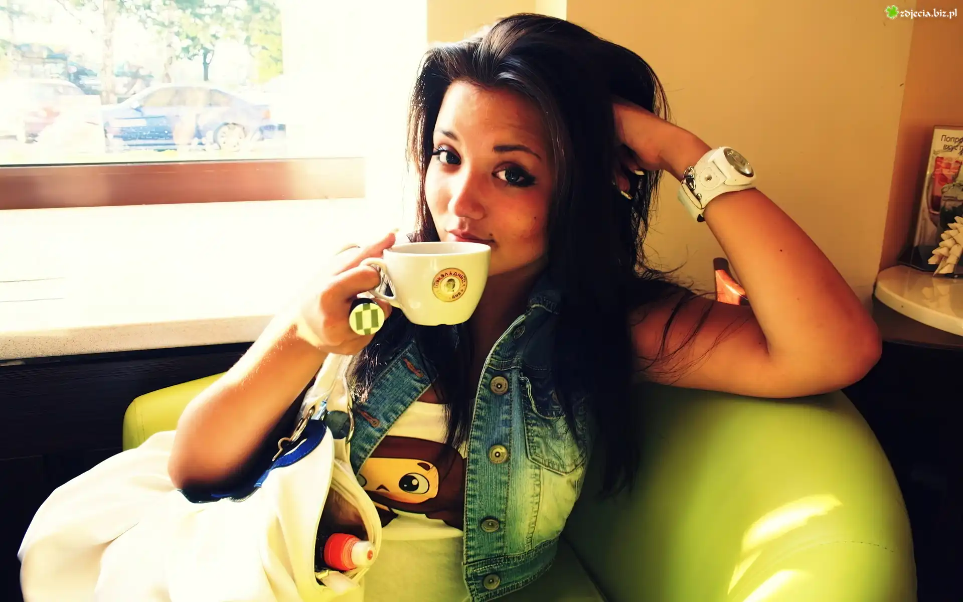 Zdjęcie Kobieta, Kawa, Filiżanka, Zegarek, Fotel