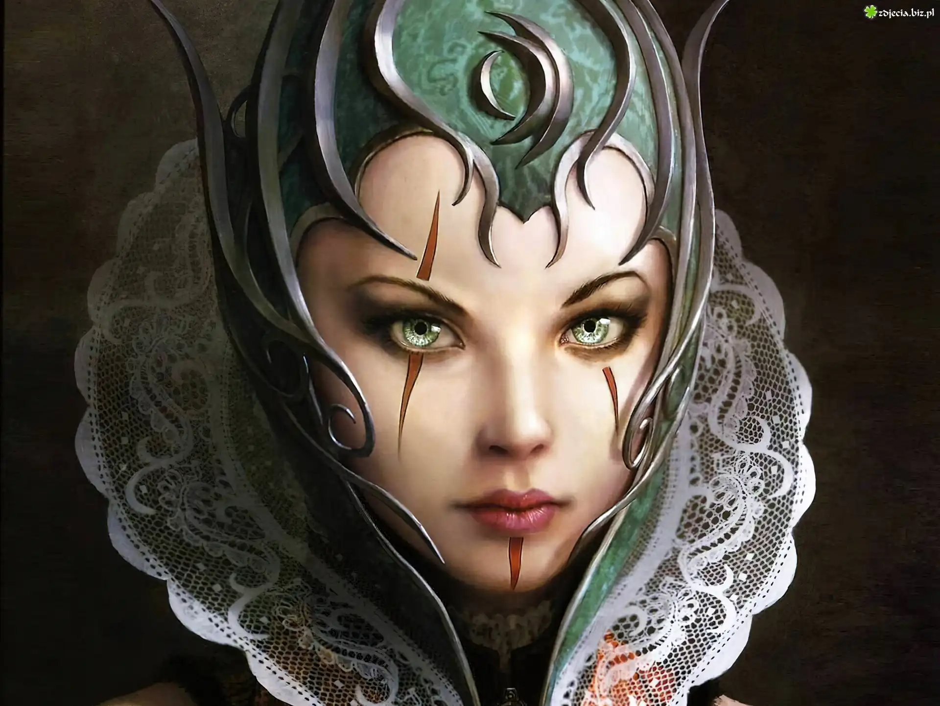 Zdjęcie Kobieta, Koronka, Zielone, Oczy