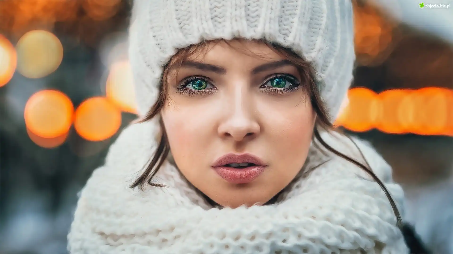 Zdjęcie Kobieta, Czapka, Szalik, Zielone, Oczy