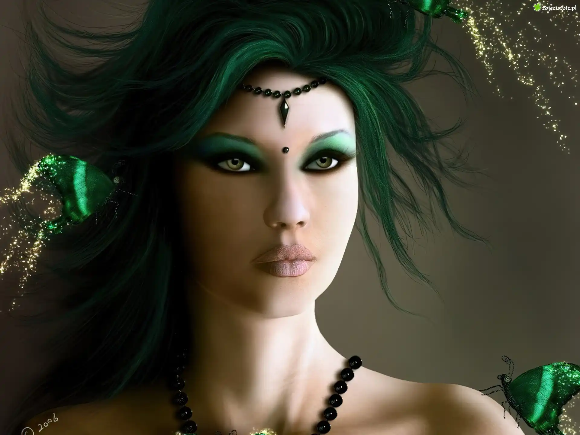 Zdjęcie Kobieta, Tilaka, Zielone, Włosy