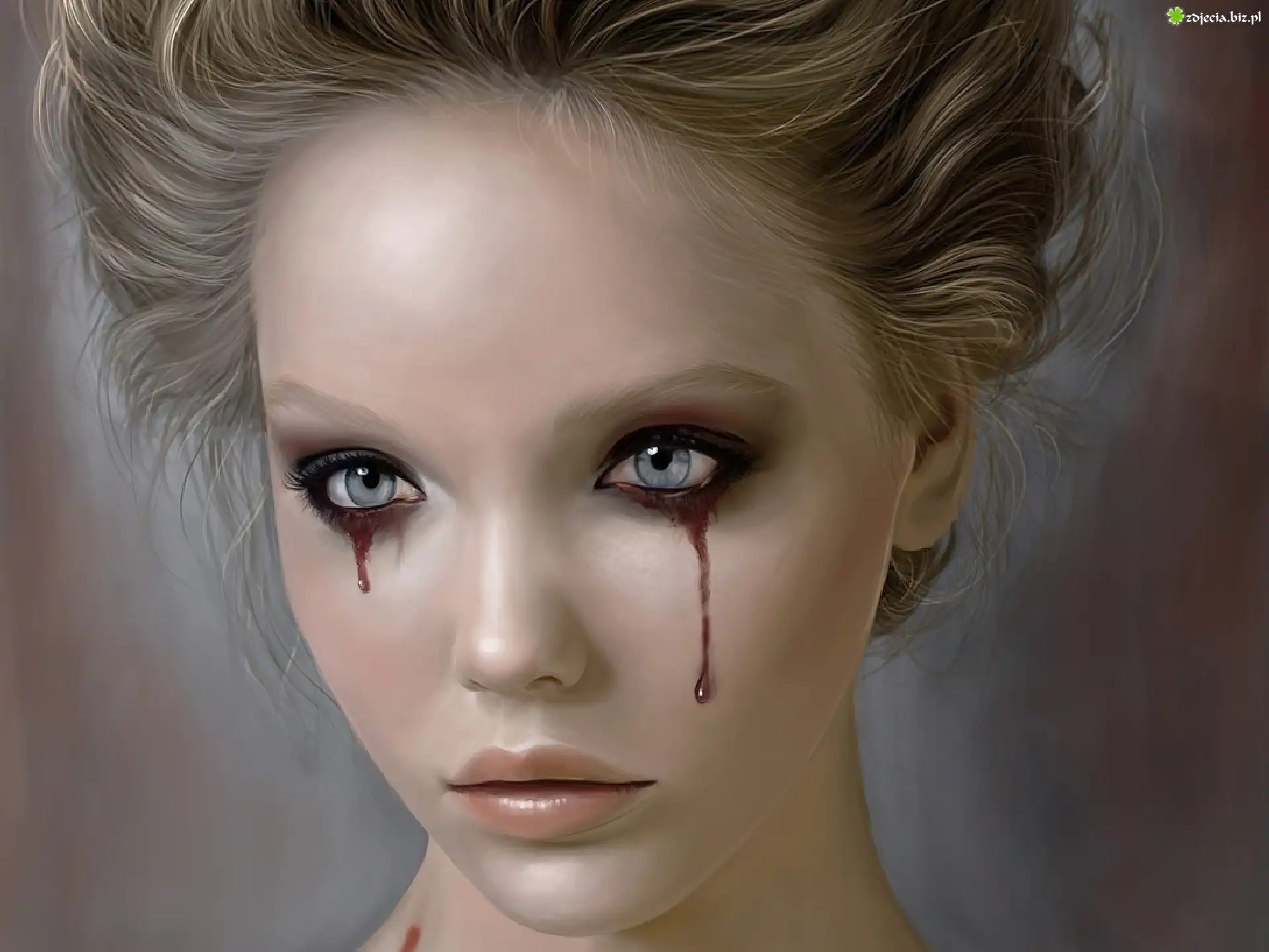 Zdjęcie Kobieta, Krwawe, Łzy, Makijaż