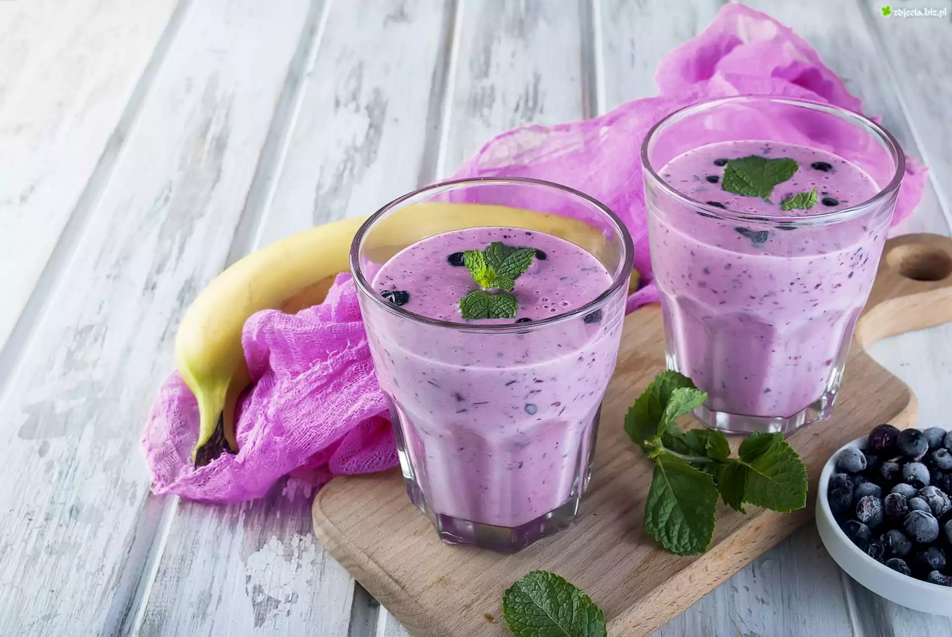 Zdjęcie Koktajl, Owocowy, Jagody, Banan, Listki, Mięta
