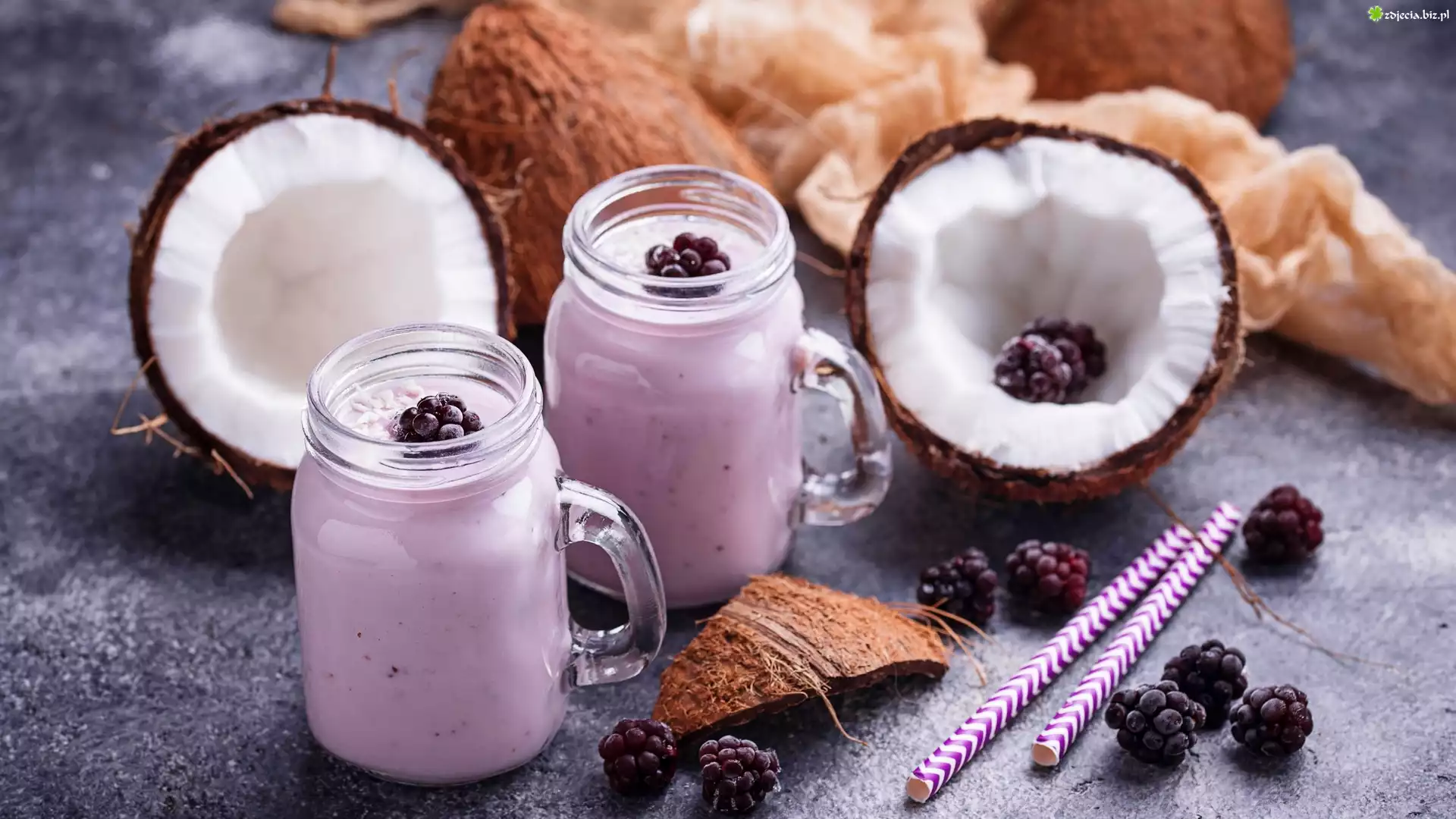 Zdjęcie, Koktajl, Kokos, Słomki, Jeżyny