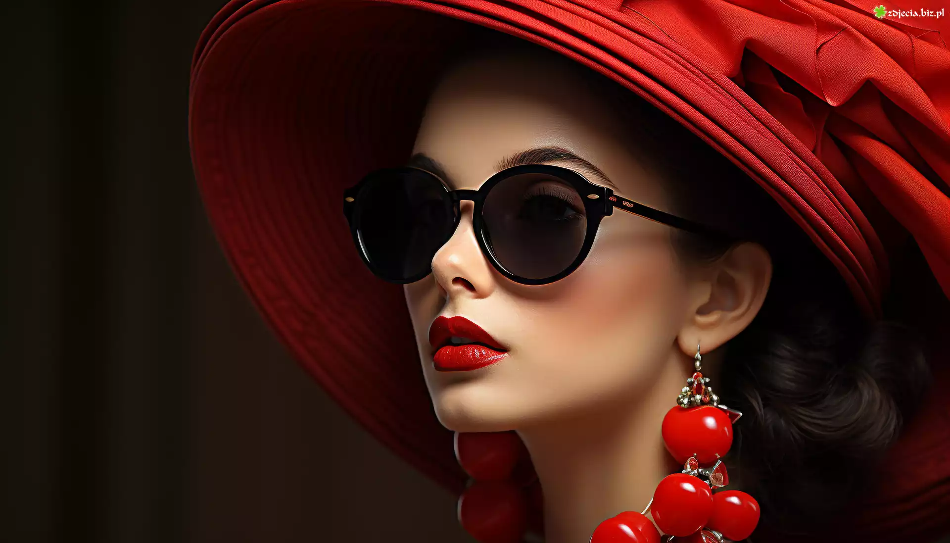 Zdjęcie Kobieta, Okulary, Biżuteria, Kolczyki, Czerwony, Kapelusz, Grafika