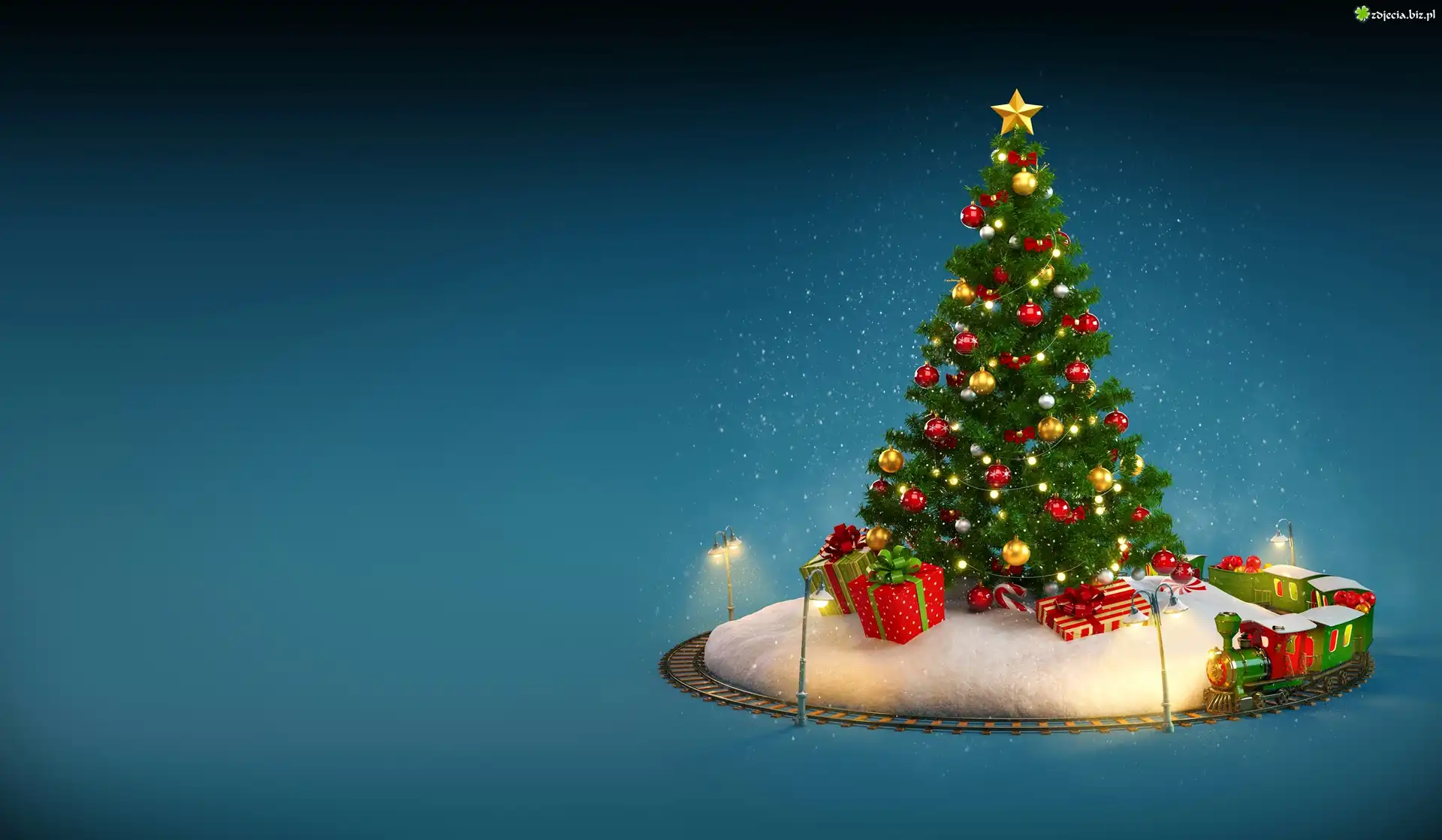 Zdjęcie, Choinka, Kolejka, Prezenty