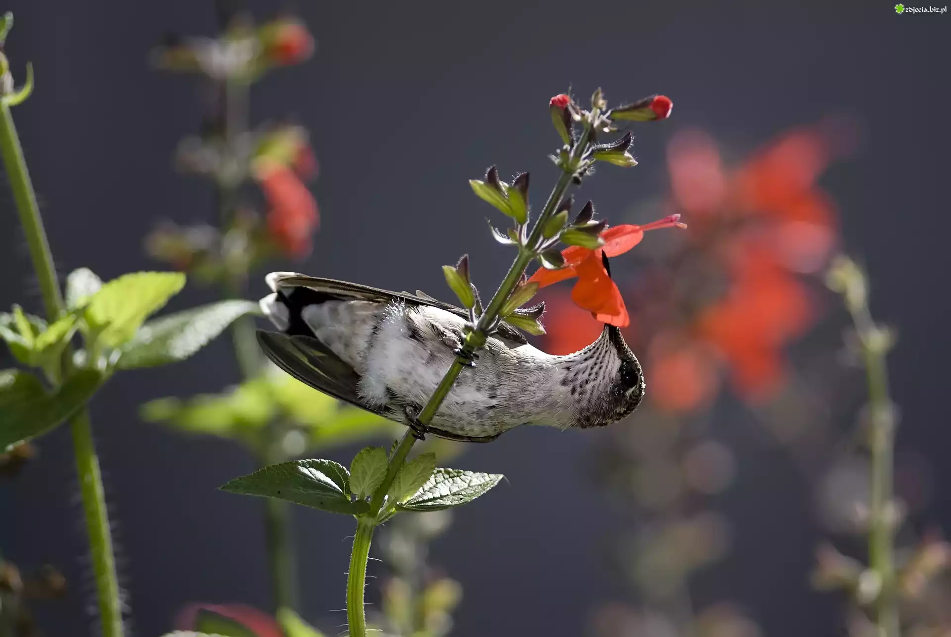 Zdjęcie Koliber, Ptak, Gałązka, Kwiaty
