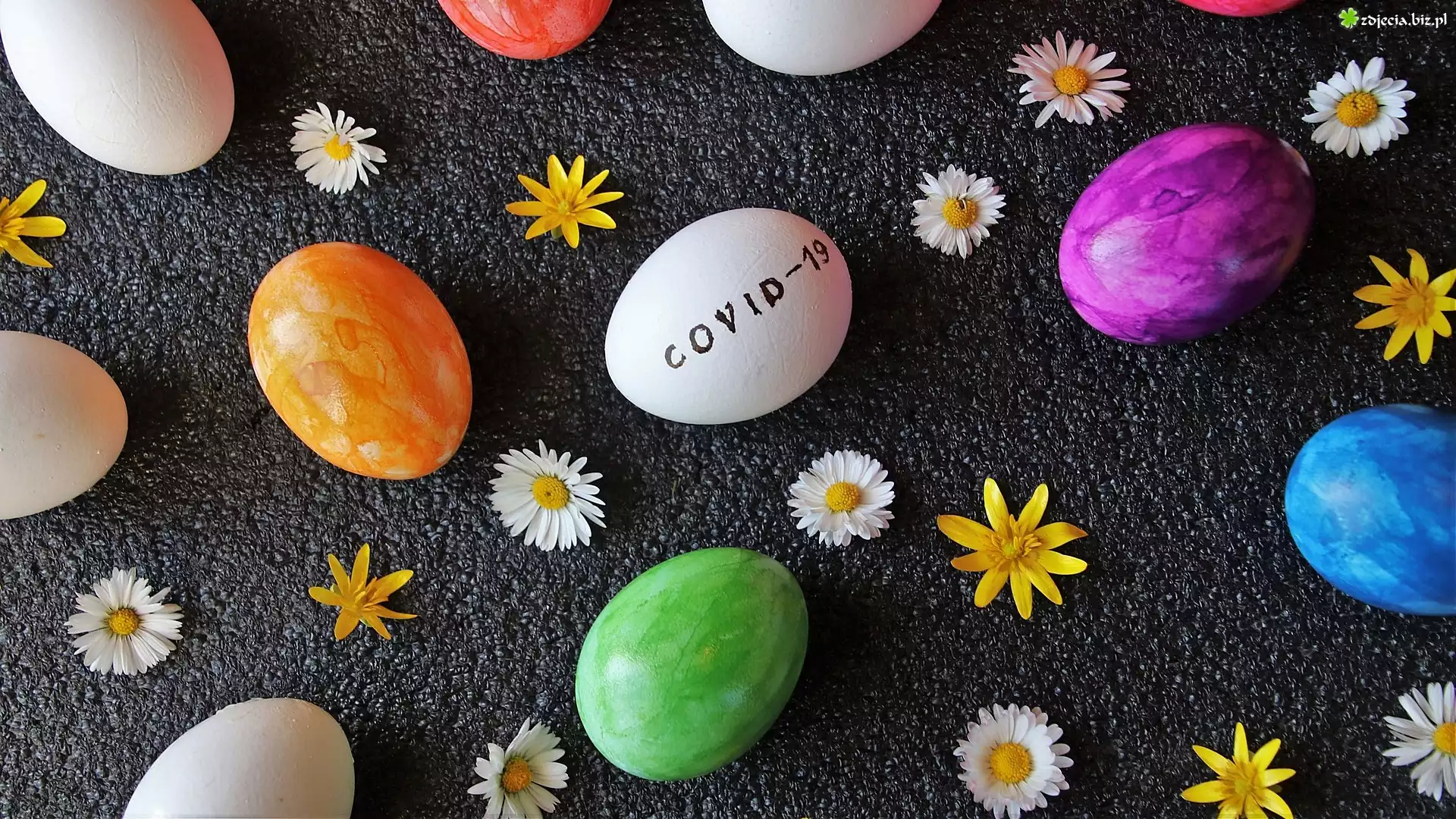 Zdjęcie Kolorowe, Pisanki, Napis, Covid-19, Kwiaty