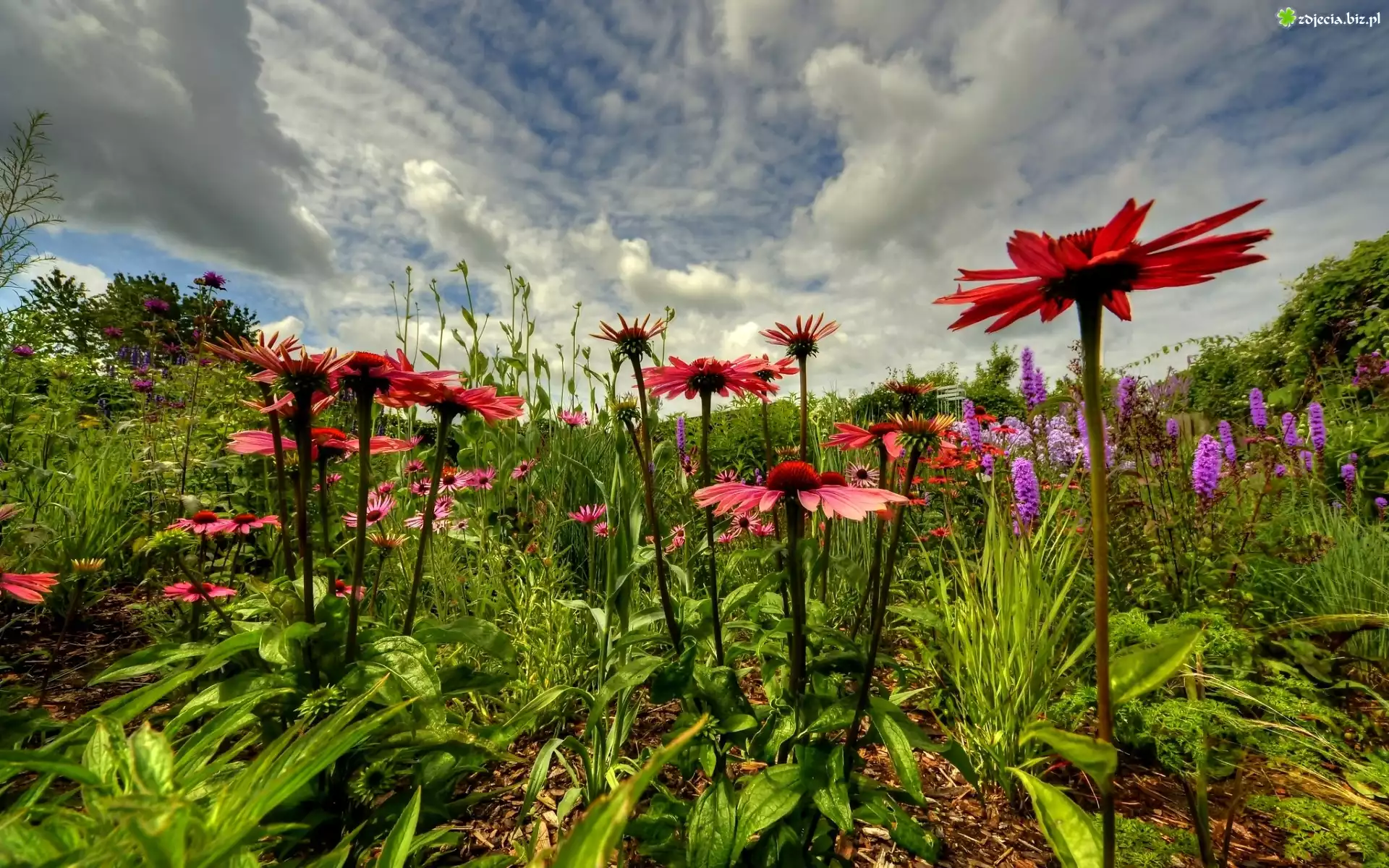 Zdjęcie Kolorowe, Kwiaty, Niebo, Chmury, Łąka