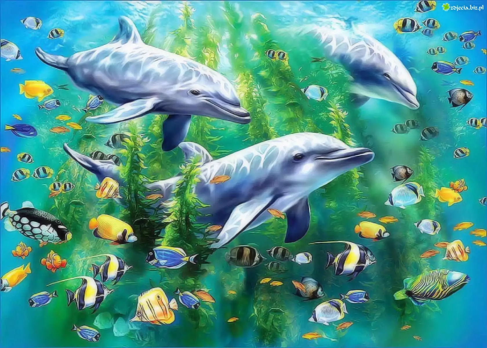 Zdjęcie Delfiny, Kolorowe, Rybki