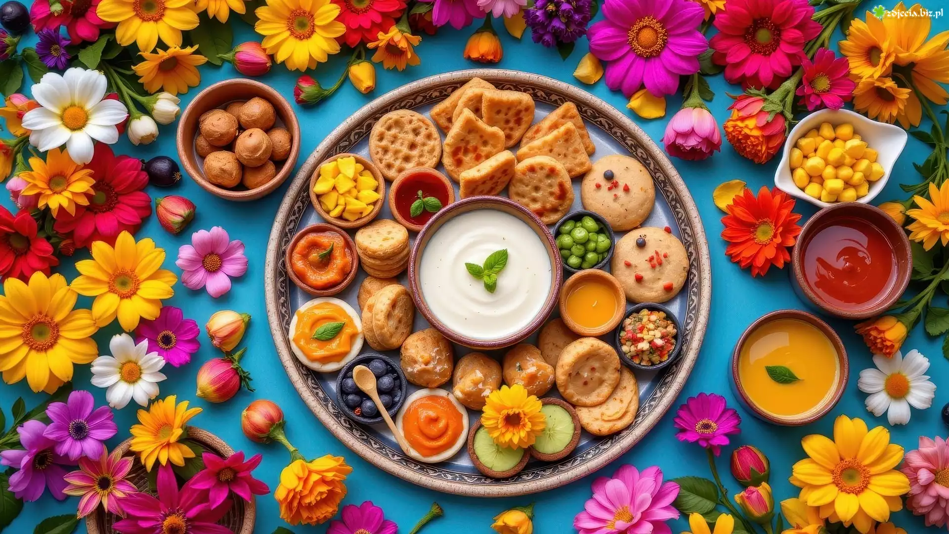 Zdjęcie Ciasteczka, Miseczki, Desery, Kolorowe, Kwiaty, Gerbery