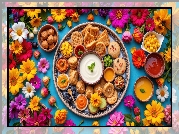 Zdjęcie, Ciasteczka, Miseczki, Desery, Kolorowe, Kwiaty, Gerbery