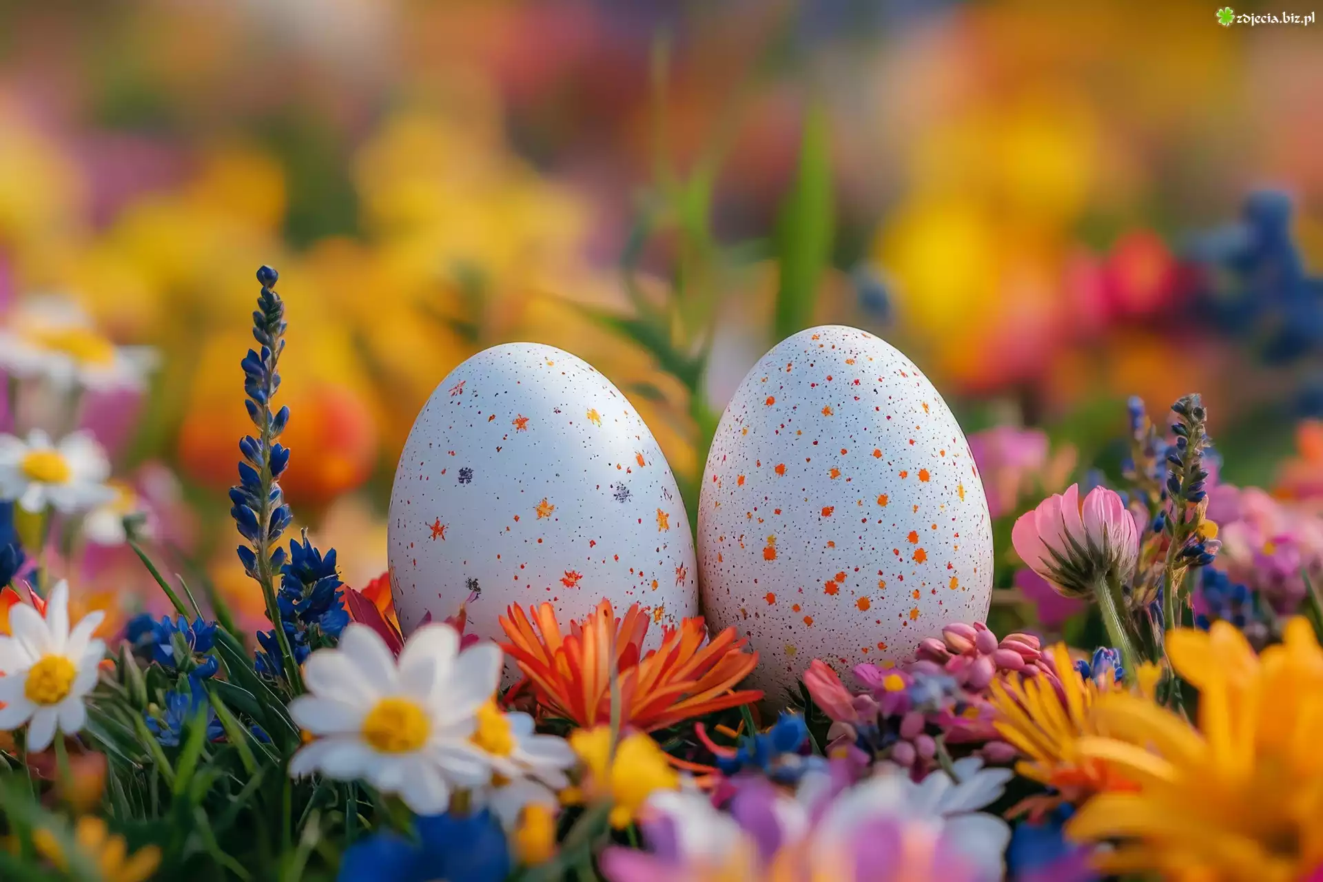 Zdjęcie Wielkanoc, Nakrapiane, Jajka, Kolorowe, Kwiaty, Grafika