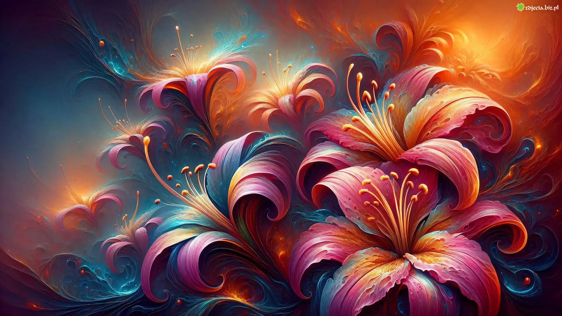 Zdjęcie Grafika, Kwiaty, Lilie, Kolorowe
