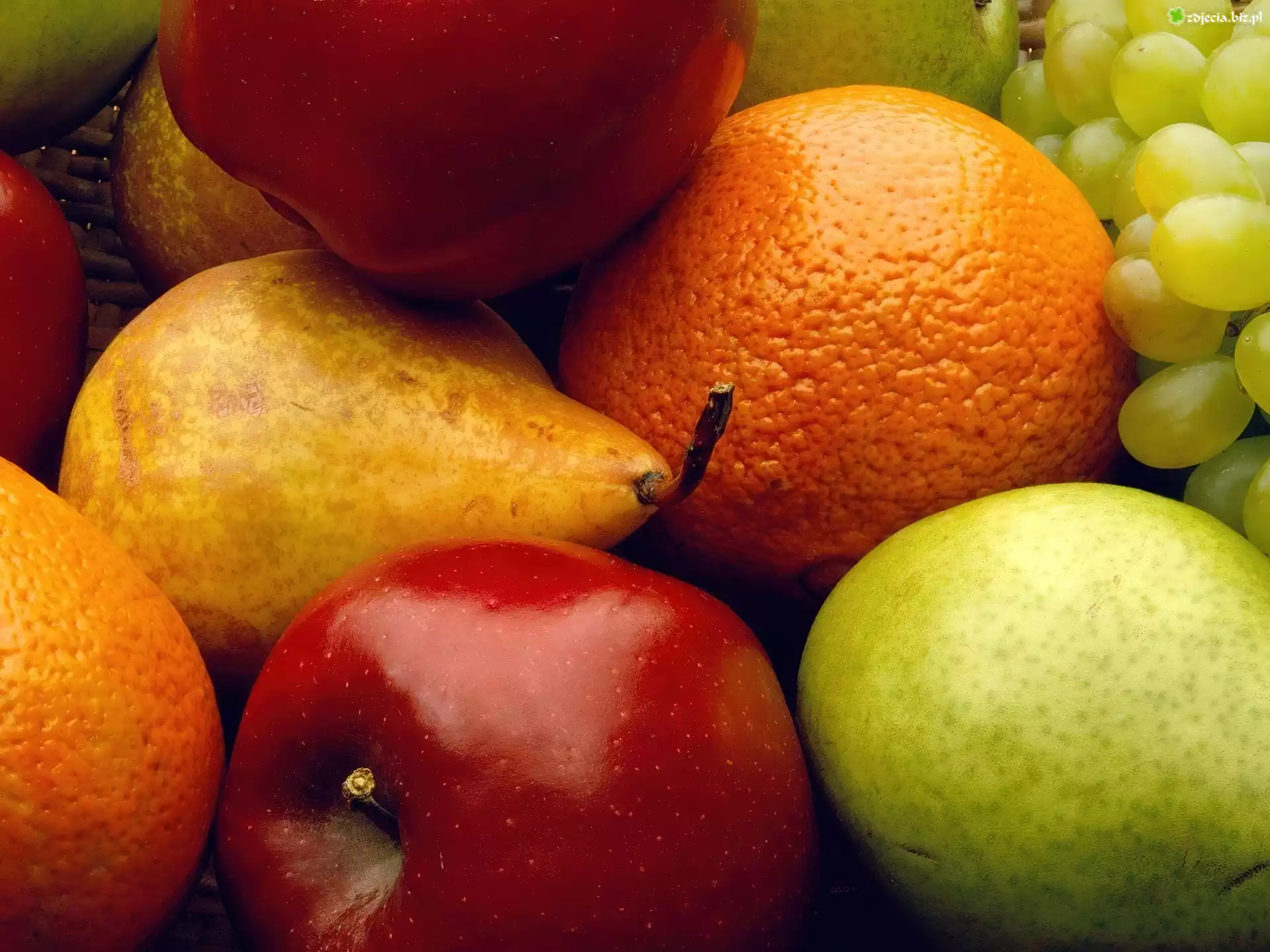 Zdjęcie, Kolorowe, Owoce, Jabłka, Gruszki, Pomarańcza