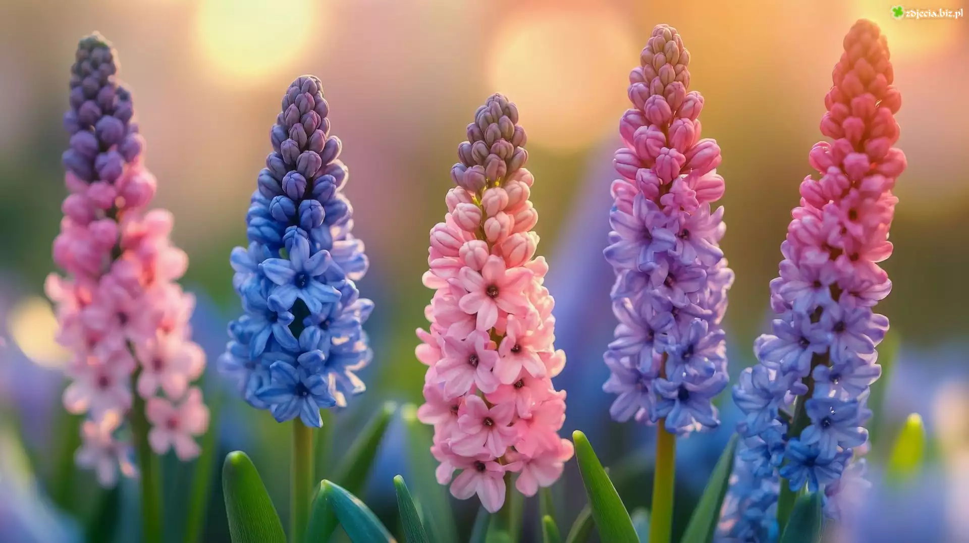 Zdjęcie Kwiaty, Kolorowe, Hiacynty, Różowe, Niebieskie