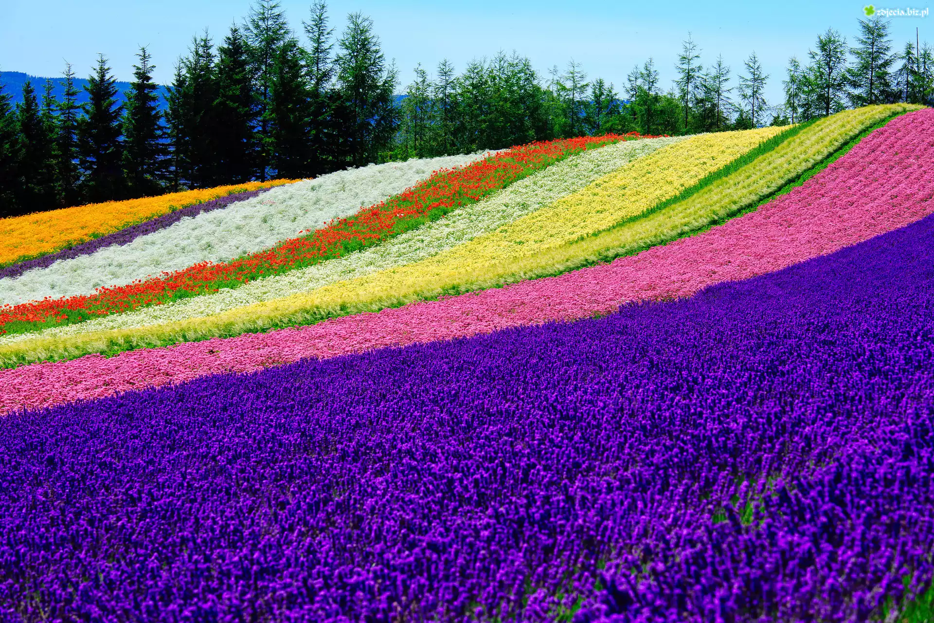 Zdjęcie Pole, Kolorowe, Kwiaty, Tomita Farm, Nakafurano, Hokkaido, Japonia