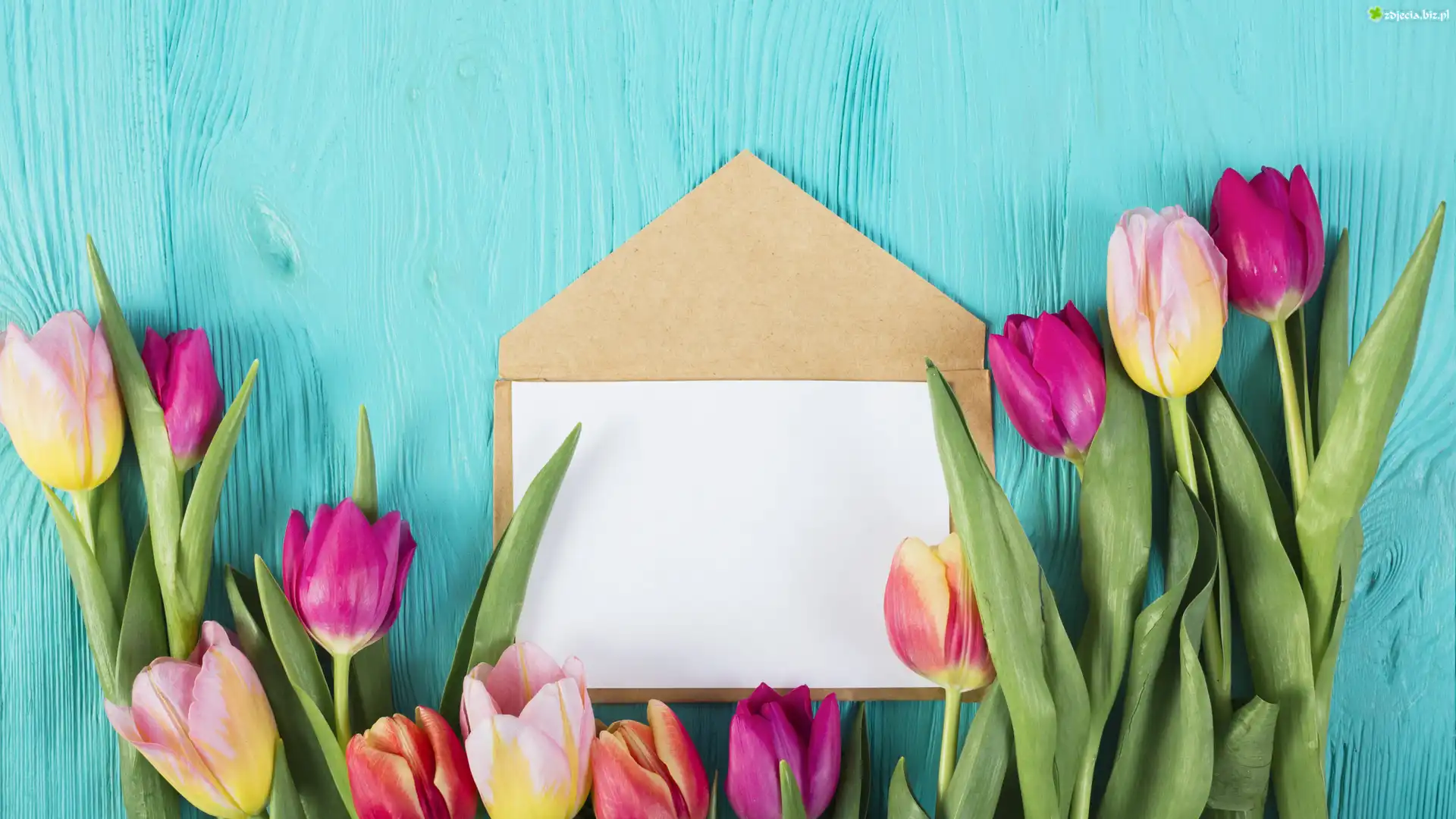 Zdjęcie Kolorowe, Tulipany, Koperta, Kartka